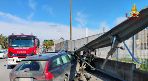 Bari, auto si schianta in via Bruno Buozzi e il guardrail sfonda il parabrezza: autista illeso – FOTO