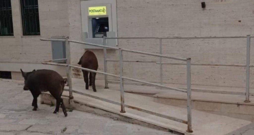 A Minervino si scrive la storia, cinghiali prelevano allo sportello della Posta: lo scatto dal futuro diventa virale