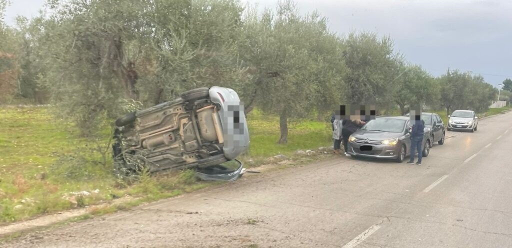 Adelfia, incidente sulla sp 133: auto si ribalta fuori strada. Un ferito