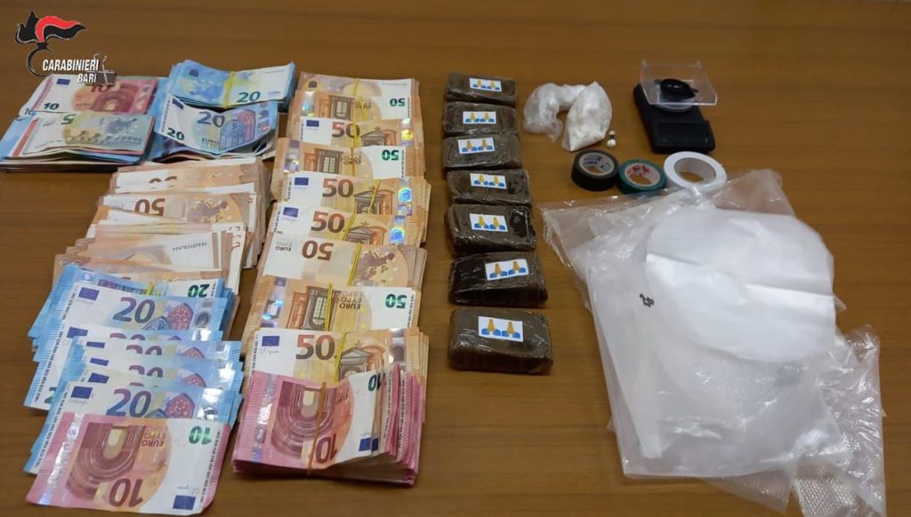 Prontamente intervenuti, i Carabinieri procedevano al controllo di uno di essi che, nella circostanza, veniva sottoposto anche a perquisizione domiciliare. All’interno dell’abitazione dell’uomo, i militari hanno rinvenuto 7 panetti di hashish per complessivi 678 grammi, un involucro contenente 37 grammi di cocaina, nonché un bilancino elettronico di precisione, materiale vario necessario per il confezionamento e una cassettina di sicurezza ove era custodita la somma in contanti di oltre 18 mila euro, ritenuta provento dell’attività illecita di spaccio, sottoposta a sequestro insieme allo stupefacente.