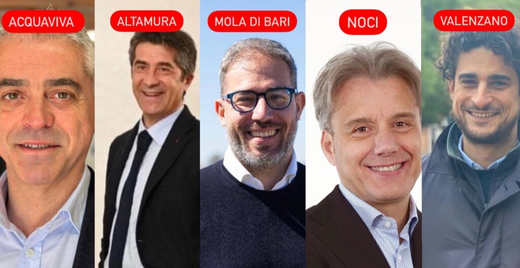 ACQUAVIVA – Marco Lenoci 50,39% (Fratelli d’Italia, Forza Italia, Senso Civico, Noi Moderati e Marco Lenoci per Acquaviva) – Francesca Pietroforte 49,61% (Pd, Terra Futura, Progetto Acquaviva, Pietroforte sindaca e Abc)