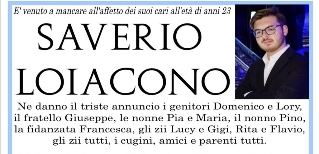 Grande partecipazione e tanta commozione questo pomeriggio, nella chiesa di Santa Fara a Bari, per i funerali di Saverio Loiacono, il 23enne morto per un arresto cardiaco nel locale di famiglia a Triggiano. Parenti, amici e conoscenti hanno voluto salutare per l’ultima volta il giovane videomaker e dj. All’esterno della chiesa è stato allestito anche un maxischermo per permettere a tutti di partecipare alla cerimonia funebre.