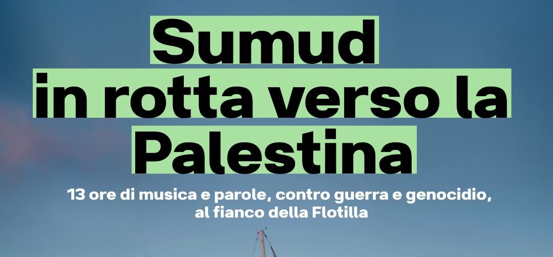 Si rafforza e si amplia Sumud – In rotta verso la Palestina, la grande giornata di mobilitazione, musica e parole in programma sabato 4 aprile a Pane e Pomodoro. L’iniziativa, che accompagna la partenza della Global Sumud Flotilla verso Gaza, nasce dalla collaborazione tra il coordinamento pugliese della Global Sumud Flotilla- Global Movement To Gaza, Thousand Madleens To Gaza, ACS ONG e il supporto del collettivo milanese Gaza FreeStyle.