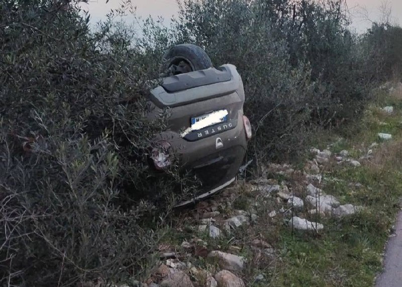Un’auto è finita fuori strada, ribaltandosi in campagna dopo un volo di alcune decine di metri. La vettura ha sfondato la recinzione di una casa e il muretto e si è schiantata anche contro un ulivo. A bordo padre e figlio, miracolosamente illesi dopo lo schianto. Sul posto Carabinieri e Polizia Stradale.