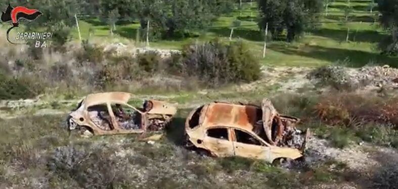 I Carabinieri hanno scoperto e trovato diverse carcasse di auto rubate e cannibalizzate nelle campagne di Trani durante una mirata attività di monitoraggio aereo con il Nucleo Elicotteri di Bari.
