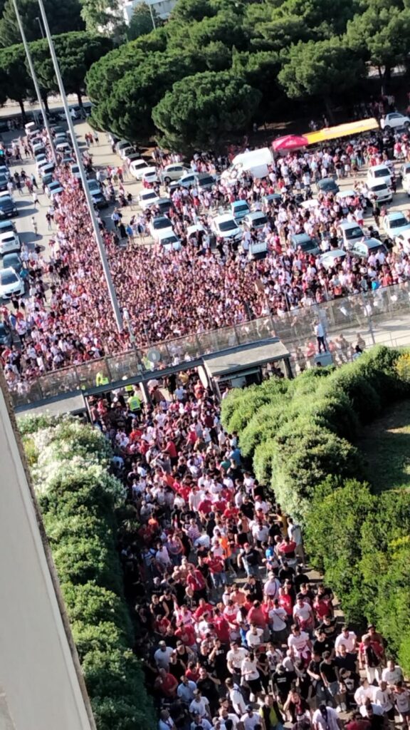 Code infinite e catene umane all’esterno del San Nicola per Bari-Cagliari, ritorno della finale playoff di Serie B. Come pronosticabile alla vigilia della partita, che ha fatto registrare il sold out in poche ore, si registra un grande caos alle varie porte dello stadio. Lo stesso presidente biancorosso De Laurentiis aveva invitato più volte i tifosi a non accalcarsi all’ultimo momento, desiderando ascoltare l’inno cantato da tutti i presenti. Non sono mancati gli attimi di tensione, con un varco che è stato forzato. Le code partono a centinaia di metri di distanza dalle porte, aperte dalle 17.30, con la gente costretta a camminare a passo di formica sotto il sole. Ai varchi, secondo le testimonianze di numerosi tifosi, sono saltati i controlli. In tanti non hanno mostrato alcun documento. Il clima è quello delle grandi occasioni, niente da invidiare a finali ben più prestigiose come quella di Champions League di ieri a Istanbul. Manca davvero poco per sapere se il Bari saprà riprendersi la serie A.