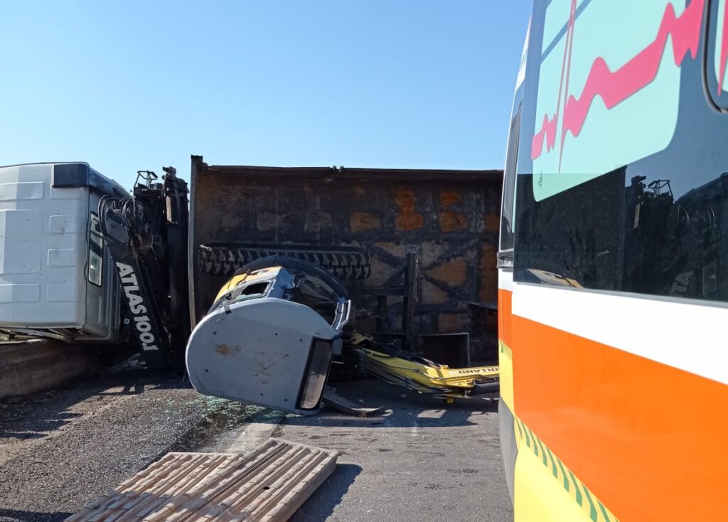 Grave incidente questa mattina sulla statale 100. All’altezza di Cellamare, in direzione Bari, un camion si è ribaltato sul fianco per cause ancora in fase di accertamento, ma pare possa essersi trattato dello scoppio dello pneumatico. Nell’incidente pare non sia rimasta coinvolta nessun altro mezzo. Il camion, stando a quanto appreso, trasportava un escavatore. Sul posto è stato necessario l’intervento dei Vigili del Fuoco per estrarre dalle lamiere il conducente rimasto ferito e trasportato in ospedale dai soccorritori del 118. Intervenuti anche i Carabinieri Ferito in modo lieve il passeggero del mezzo pesante. L’incidente ha bloccato il traffico e si registrano lunghe code in direzione Bari.