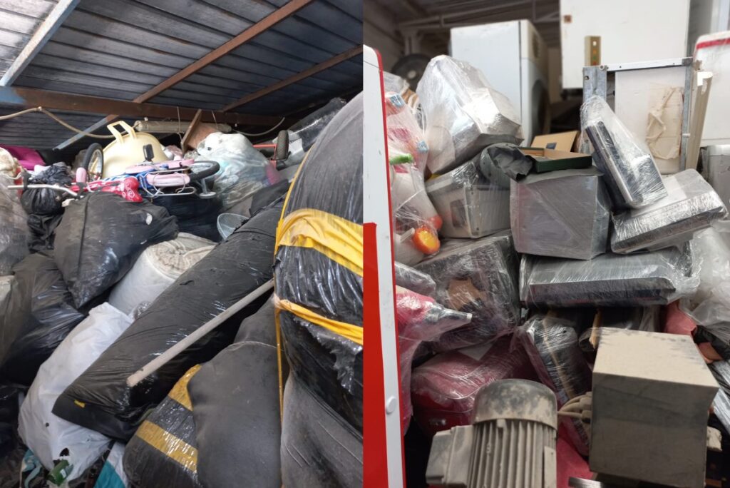 All’interno del deposito venivano rinvenuti ingenti quantità di rifiuti, anche pericolosi, costituiti da decine di balle incellophanate, contenenti stracci ed indumenti usati, pronti per la spedizione senza alcun trattamento preliminare, oltre un centinaio di RAEE costituiti da frigoriferi, lavatrici, condizionatori e televisori, numerosi rotoloni di moquette, materassi, il tutto ammassato in promiscuità, oltre che abbandonato in maniera incontrollata, pneumatici usati, decine di traversine ferroviarie in legno, pezzi di carrozzeria e parti di motori di veicoli. Considerato che i predetti locatari dell’area di scarico erano privi degli atti autorizzatori per la corretta gestione dei rifiuti, in quanto ricevevano e gestivano abusivamente ingenti quantità di rifiuti, pericolosi e non, si è configurata a loro carico la violazione agli artt. 256-259 del T.U.A. I locali depositi e le aree interessate al conferimento incontrollato dei rifiuti, pericolosi e non, sono state tutte sottoposte a sequestro e nominato custode giudiziario il proprietario del compendio immobiliare.