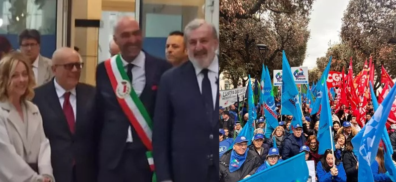 È gremita di bandiere rosse e azzurre piazza Massari, nel centro di Bari, dove si svolge la manifestazione principale in Puglia nel giorno dello sciopero generale. In piazza ci sono tutte le categorie di Cgil e Uil, oltre pensionati e studenti. Sul palco si alternano i rappresentanti dei due sindacati. Fra gli altri ci sono il segretario generale della Uil Puglia, Gianni Ricci, e la segretaria nazionale della Cgil, Lara Ghiglione. Lo sciopero è stato indetto in 50 piazze italiane, in Puglia copre tutte e sei le province. Le rivendicazioni principali riguardano la politica industriale del Paese, le risorse per la sanità, la scuola, il servizio pubblico e la situazione dei sindacati. Tutto mentre la presidente del Consiglio, Giorgia Meloni, è arrivata nella sede del Consiglio regionale della Puglia, a Bari, per la firma dell’Accordo di Coesione che sbloccherà circa 6 miliardi di fondi Fsc per lo sviluppo della regione. Con la premier c’è anche il ministro per gli Affari Europei, Raffaele Fitto, che con la firma dell’accordo concluderà il suo mandato nel governo, prima di assumere a Bruxelles l’incarico di vicepresidente esecutivo della Commissione Ue. Ad accoglierla la premier e il ministro sono stati, tra gli altri, il governatore pugliese, Michele Emiliano, la presidente del Consiglio regionale, Loredana Capone e il sindaco di Bari, Vito Leccese.