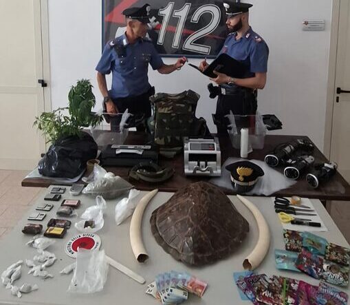 Sono stati rinvenuti, inoltre, un carapace di tartaruga “caretta caretta” e due zanne in avorio di elefante, di cui C.F. non era in grado di dimostrare la lecita provenienza e per tale motivo è stato denunciato anche per la violazione della specifica norma inerente il commercio internazionale delle specie animali e vegetali in via di estinzione.