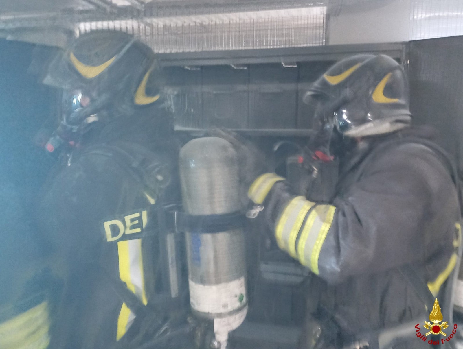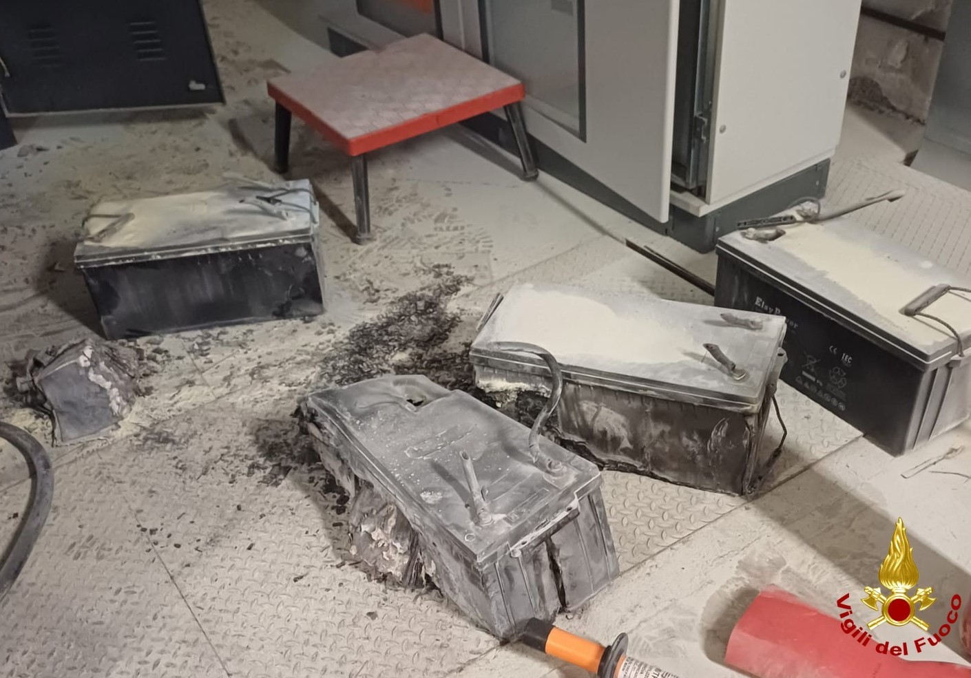 A fuoco alcuni gruppi batterie che solitamente garantiscono la continuità elettrica nei pochi secondi che intercorrono dall’eventuale black out elettrico allo start del gruppo elettrogeno.