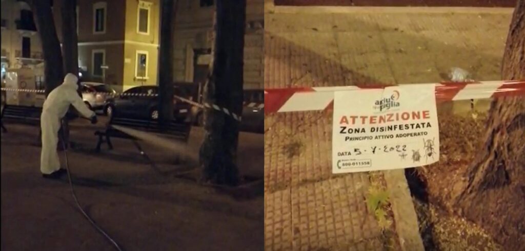 Il programma, che si aggiunge a quello ordinario già in vigore e che andrà avanti per tutta l’estate, è stato predisposto per far fronte alla situazione assolutamente anomala e impossibile da prevedere – come hanno spiegato gli esperti del dipartimento di Medicina veterinaria dell’Università degli studi di Bari – che ha causato una serie di segnalazioni da parte dei cittadini, nei giorni scorsi.