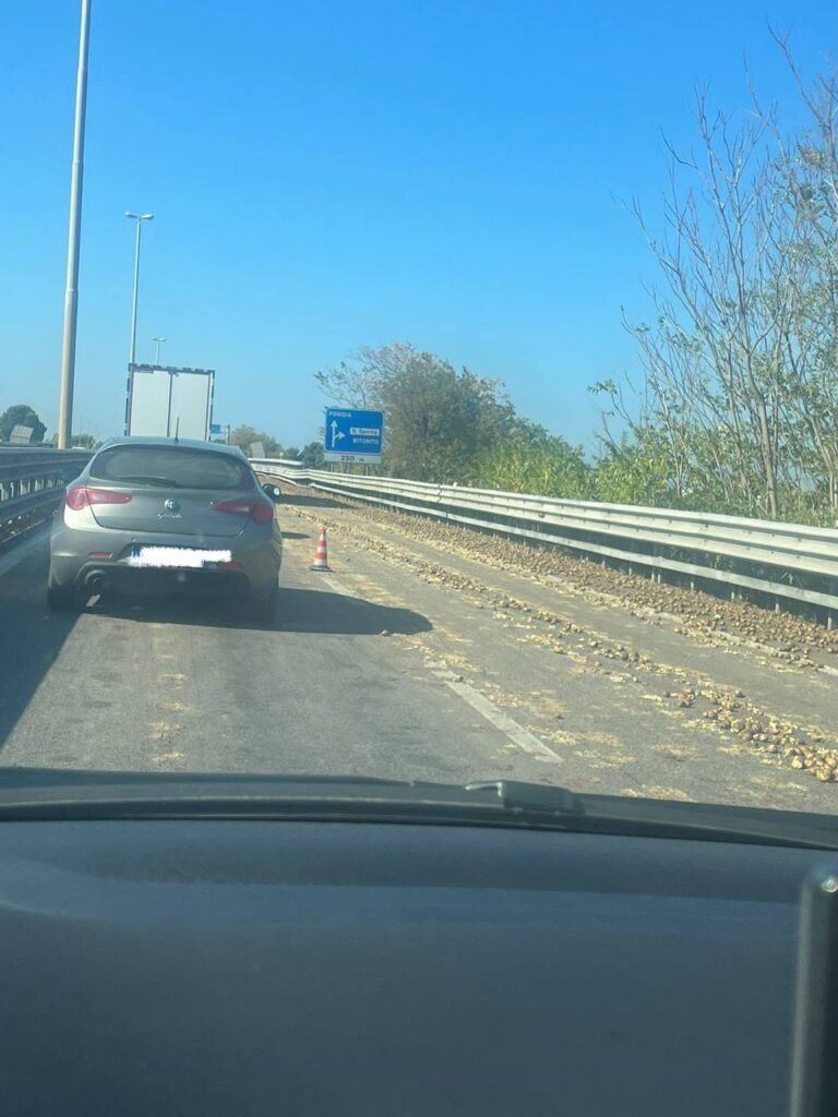 Invasione di patate in tangenziale direzione Foggia all’altezza dell’uscita per Santo Spirito. Un camion ha perso il carico trasportato. Sul posto è intervenuto il personale Anas, la corsia è stata chiusa e il traffico ha subito inevitabili disagi. “Si consiglia, per chi é diretto in direzione Nord, di prendere l’uscita di palese e percorrere la via nazionale fino a santo spirito”, fa sapere la Polizia Locale.