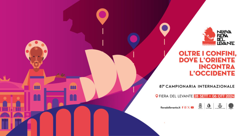 L’87esima Campionaria Internazionale della Fiera del Levante si svolgerà dal 28 settembre al 6 ottobre. Si tratta di un cambio storico. Tema dell’edizione 2024 è “Oltre i confini, dove l’Oriente incontra l’Occidente” rappresentativo dell’attività di Nuova Fiera del Levante srl che punta a spingersi oltre e guardare al futuro.