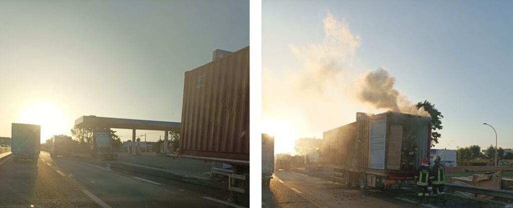 Attimi di panico questa mattina all’alba sulla statale 16. In direzione sud, all’altezza di Torre a Mare, il rimorchio di un tir ha improvvisamente fuoco, per cause ancora in fase di accertamento. Il tir si è staccato dirigendosi presso la vicina stazione di servizio, mentre i vigili del fuoco, accorsi sul posto hanno spento le fiamme che avevano invaso il retro del mezzo pesante. Si registrano rallentamenti sulla strada.