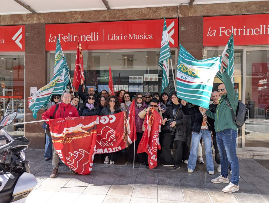 “Nella giornata di oggi le OO.SS. FILCAMS CGIL- FISASCAT CISL e UILTuCS hanno proclamato lo sciopero nazionale degli oltre 1200 lavoratori della catena di librerie Feltrinelli/Finlibri per protestare per la fase di stallo in cui versano le trattative per il rinnovo del Contratto Integrativo Aziendale. A sostegno del suddetto sciopero, le OO.SS. FILCAMS CGIL Bari e FISASCAT CISL Bari e Bat hanno indetto un sit-in di protesta dei lavoratori della suddetta catena di librerie della provincia di Bari dinanzi alla sede della Feltrinelli sita in Bari alla Via Melo n. 119”.