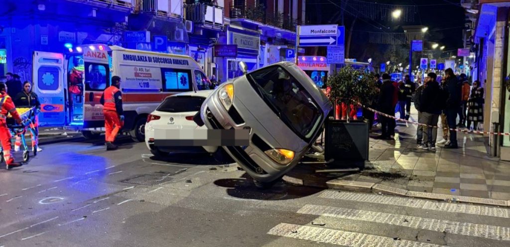 Brutto incidente questa sera a Bari in corso Benedetto Croce all’angolo con via Monfalcone. Coinvolte due auto, la Scenic è rimasta sospesa sulla fiancata dell’Alfa Romeo Giulietta. Sul posto sono intervenuti due ambulanze del 118, i Vigili del Fuoco e la Polizia Locale. Il bilancio è di diversi feriti, alcuni gravi e trasportati in codice rosso in ospedale. Resta da chiarire la dinamica dell’incidente.