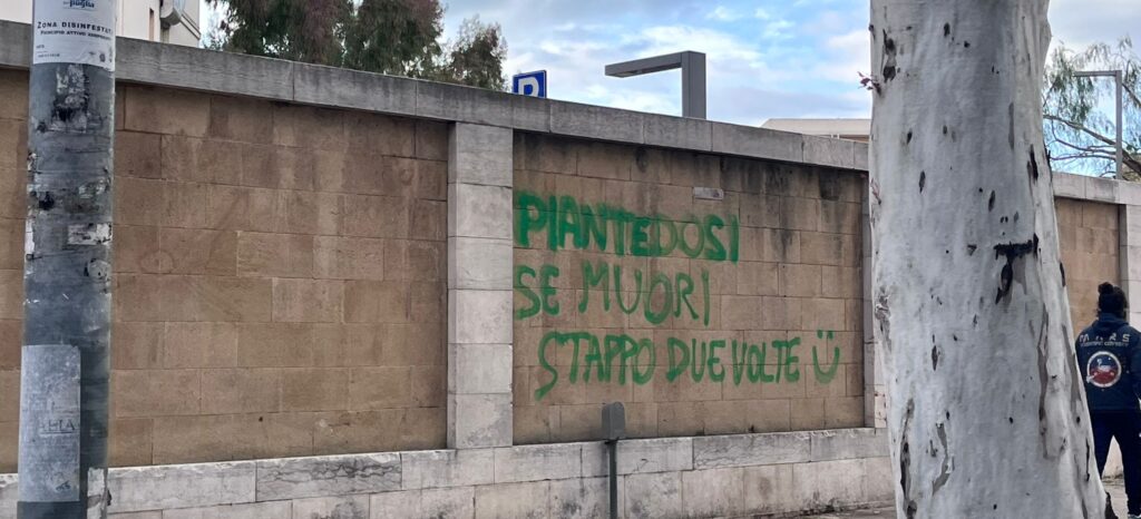 “Siamo purtroppo costretti a registrare l’ennesimo gesto violento e inaccettabile da parte di ignoti che vogliono tentare in tutti i modi di screditare la città di Bari”. Così il consigliere regionale della Lega, Fabio Romito, commenta una scritta contro il ministro dell’Interno Matteo Piantedosi apparsa nelle scorse ore sul muro di confine del Policlinico in viale Orazio Flacco.