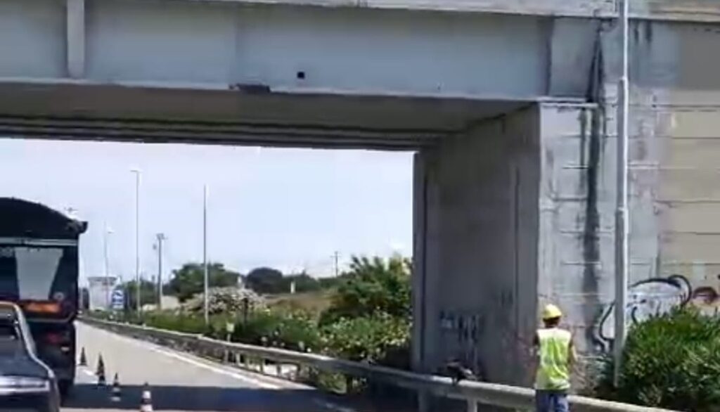 Il braccio di una gru, caricata su un camion, ha urtato questa mattina violentemente contro un cavalcavia della ss16 poco prima dell’uscita per Bari San Giorgio, in direzione Brindisi. L’impatto ha provocato la caduta di alcuni pezzi di cemento dal ponte su alcune auto in transito.