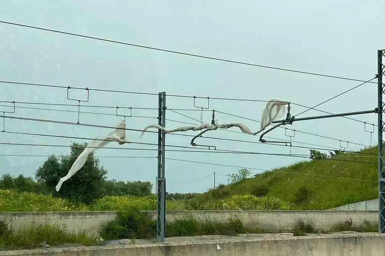 La linea ferroviaria che collega Bari Centrale all’Aeroporto di Bari-Palese è temporaneamente sospesa a causa di due grandi teli che, trasportati dal forte vento, si sono incastrati nella linea di contatto.