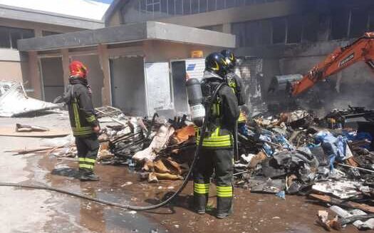 Le fiamme, sulla cui natura sono in corso accertamenti, hanno bruciato materiale di risulta in via di smaltimento che si trovava all’esterno dell’immobile e una parte esigua interna alla struttura. Sul posto, oltre ai vigili del fuoco, sono intervenuti gli agenti della polizia locale.