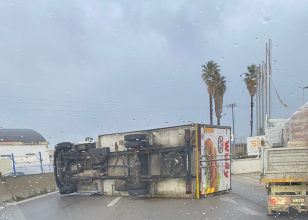 L’incidente sta creando non pochi disagi alla circolazione stradale, in direzione di Modugno. Il camionista è stato soccorso dal 118.