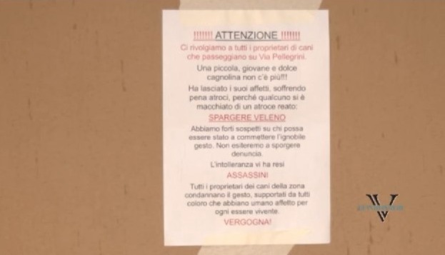 Ora il terzo cane invece è morto dopo aver ingerito cloruro di sodio in via Pellegrini, anche in questo caso, cosi come nel primo altri cani sono stati male accusando gli stessi sintomi dei cani deceduti.
