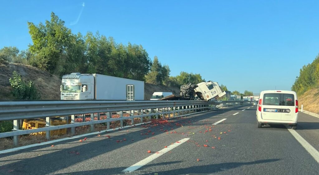 Incidente sull’autostrada A14 questa mattina. All’altezza di Canosa, per cause ancora in fase di accertamento, un camion, si presume senza il coinvolgimento di altri veicoli, si è schiantato contro il guardrail. L’impatto ha rotto le lamiere del mezzo pesante facendo riversare sull’asfalto tonnellate di pomodori. Sul posto è giunta l’ambulanza del 118. Si registrano lunghe code sull’autostrada in direzione Bari.