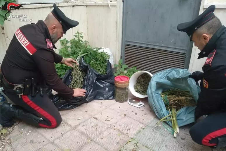 Sette chili di marijuana nascosti tra garage e cortile di un’abitazione sono stati scoperti dai carabinieri di Taranto che hanno arrestato un 51enne.