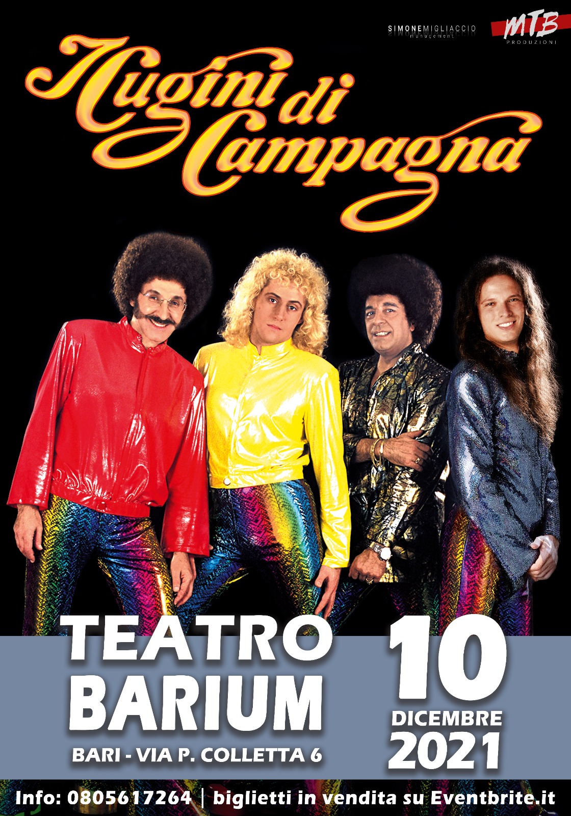 L’evento ha subìto un repentino cambio location dovuto problemi di natura tecnica non imputabili all’Agenzia organizzatrice, la MTB Produzioni, che si impegna a far vivere al pubblico una serata indimenticabile. Per il programma completo del Teatro Barium è possibile cliccare su questo link. www.mtbproduzioni.com/teatrobarium. Per info e prenotazioni: https://www.eventbrite.it/e/biglietti-i-cugini-di-campagna-live-concert-a-bari-168951974905