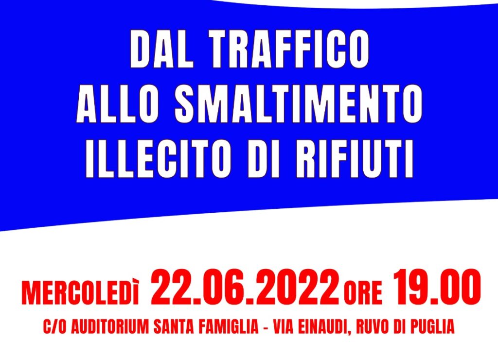 Gens Nova OdV e RUVOLAB, da sempre portatori di interessi diffusi nell’ambito della legalità hanno organizzato un convegno, in programma questo pomeriggio alle ore 19 all’auditorium Santa Famiglia a Ruvo in via Einaudi, per disaminare la problematica relativa agli ecoreati.