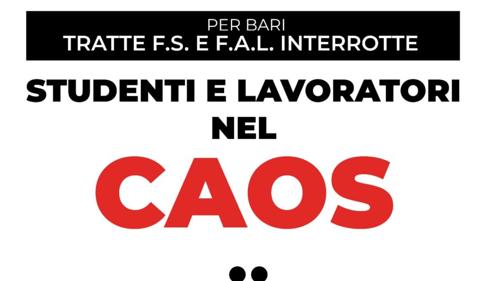 “Da inizio giugno a settembre le FAL hanno bloccato l’accesso alla stazione di Bari Centrale, predisponendo un servizio bus sostitutivo che parta dalla stazione di Bari Scalo e conduca a Bari Centrale, dilatando notevolmente i tempi di viaggio; d’altro canto le FS annunciano per tutto il mese di Luglio e quello di Agosto lavori sulla linea Bari-Taranto, creando così molti disagi per i giovani lavoratori e studenti della zona, che dovranno adattarsi alla carenza di corse dei bus, spesso attendendo sotto il sole cocente e tornando a casa molto tardi”, si legge nella nota.