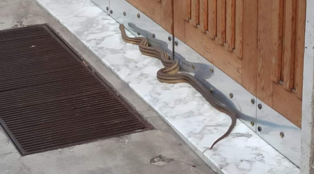 Nei giorni scorsi a Noicattaro alcuni residenti hanno avuto un incontro ravvicinato con un esemplare di serpente cervone adulto davanti al portone di un’abitazione. Sono state subito allertate le guardie zoofile ANPANA di Bari, il rettile è stato recuperato e liberato nel suo habitat. Si tratta del serpente italiano più lungo, la sua lunghezza può variare da 110 a 180 centimetri da adulto e non è velenoso.