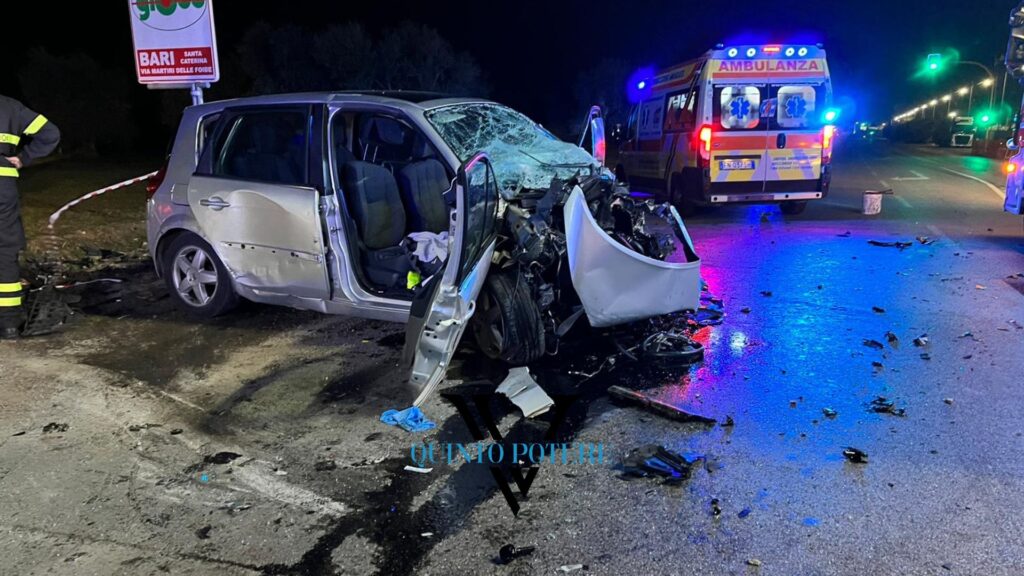 Cominciano a emergere le prime notizie in merito allo schianto frontale avvenuto nella serata di ieri sulla sp 231, tra Modugno e Bitonto. Una tragedia costata la vita a quattro giovani di età compresa fra i 16 e i 24 anni. Altri due sono stati trasportati in ospedale e le loro condizioni sono apparse subito gravi. Un ragazzo di 23 anni è stato condotto al Policlinico; la ragazza di 22 anni, invece, all’ospedale Di Venere. Una scena straziante, alla quale hanno purtroppo assistito diversi parenti. Sul posto, oltre agli operatori del 118, sono intervenuti Carabinieri, Polizia Stradale e Vigili del Fuoco. I quattro giovani deceduti sono Alessandro Viesti di 24 anni, Tommaso Ricci di 23 anni, Floriana Fallacara di 20 anni e Lucrezia Natale di 16 anni. Le vittime erano tutte bitontine.