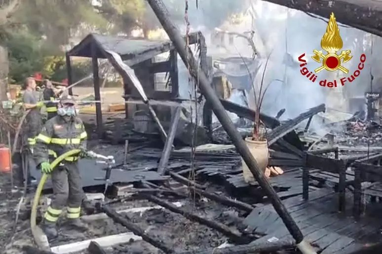 L’incendio ha coinvolto in particolare una struttura in legno utilizzata come deposito alcolici, lavanderia stoviglie, bagno disabili e servizi igienici del personale. Sul posto sono intervenuti i vigili del fuoco che stanno ancora completando le operazioni di spegnimento e i carabinieri a cui sono affidate le indagini.