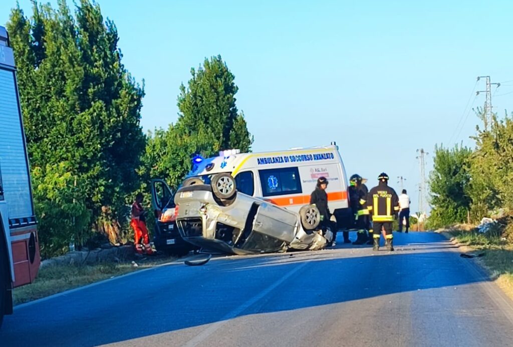 Incidente sulla Sannicandro – Adelfia. Una ragazza ha perso il controllo della macchina ribaltandosi. Secondo quanto appreso la giovane ha cercato di scansare un mezzo in uscita da una strada laterale, perdendo il controllo della macchina. Sul posto sono accorsi i soccorritori del 118, Vigili del Fuoco e Carabinieri.