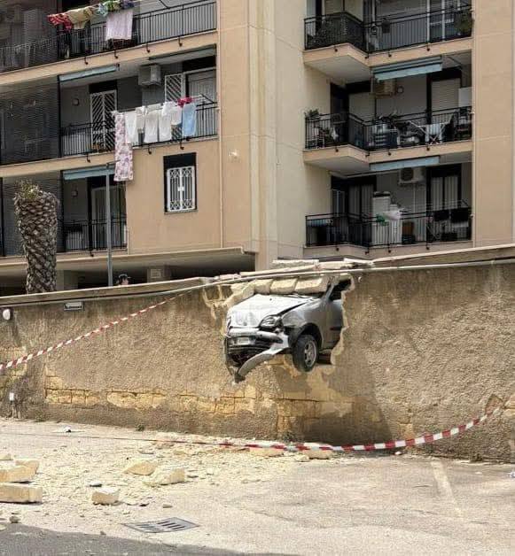 Incredibile incidente ieri mattina nel rione Sant’Andrea a Bisceglie dove una Fiat 600 è rimasta incastrata e sospesa in un muro. L’auto è finita contro la recinzione di un’area condominiale, alla guida una donna che è rimasta illesa.