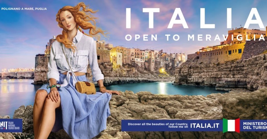 La Venere di Botticelli è la protagonista della nuova campagna del ministero del Turismo e di Enit “Italia: Open to meraviglia” per pubblicizzare tutte le bellezze italiane in tutto il mondo. Tra le mete della Venere c’è anche Polignano. La dea con una camicia bianca e una ampia gonna celeste siede su uno scoglio con alle spalle lama Monachile. La trovata è del gruppo Armando Testa. La campagna, che sta facendo molto discutere sui social, è costata 9 milioni di euro e punta ad arrivare in tutto il mondo. La Venere sarà negli hub degli Aeroporti Internazionali, sui voi Ita Airways, nelle stazioni ferroviarie europee come Franca, Germania, Austria e Svizzera. Le polemiche nascono dal fatto che la Venere sia diventata una influencer che gira per le più interessanti città italiane.