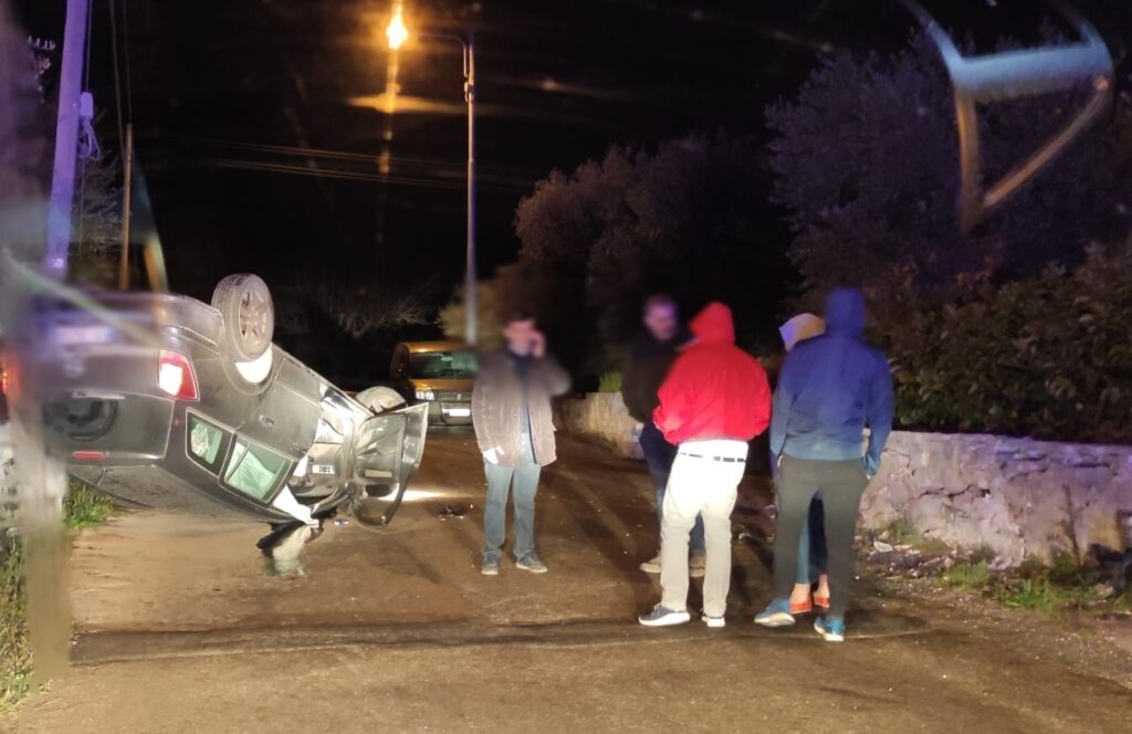 Vigilia di Pasqua con spavento per un 38enne, coinvolto ieri sera in un incidente stradale sulla strada provinciale 162 Locorotondo – San Marco. Il conducente, forse a causa della velocità e dell’asfalto bagnato, ha perso il controllo dell’auto, che si è ribaltata prima di finire contro il muro di una villetta.