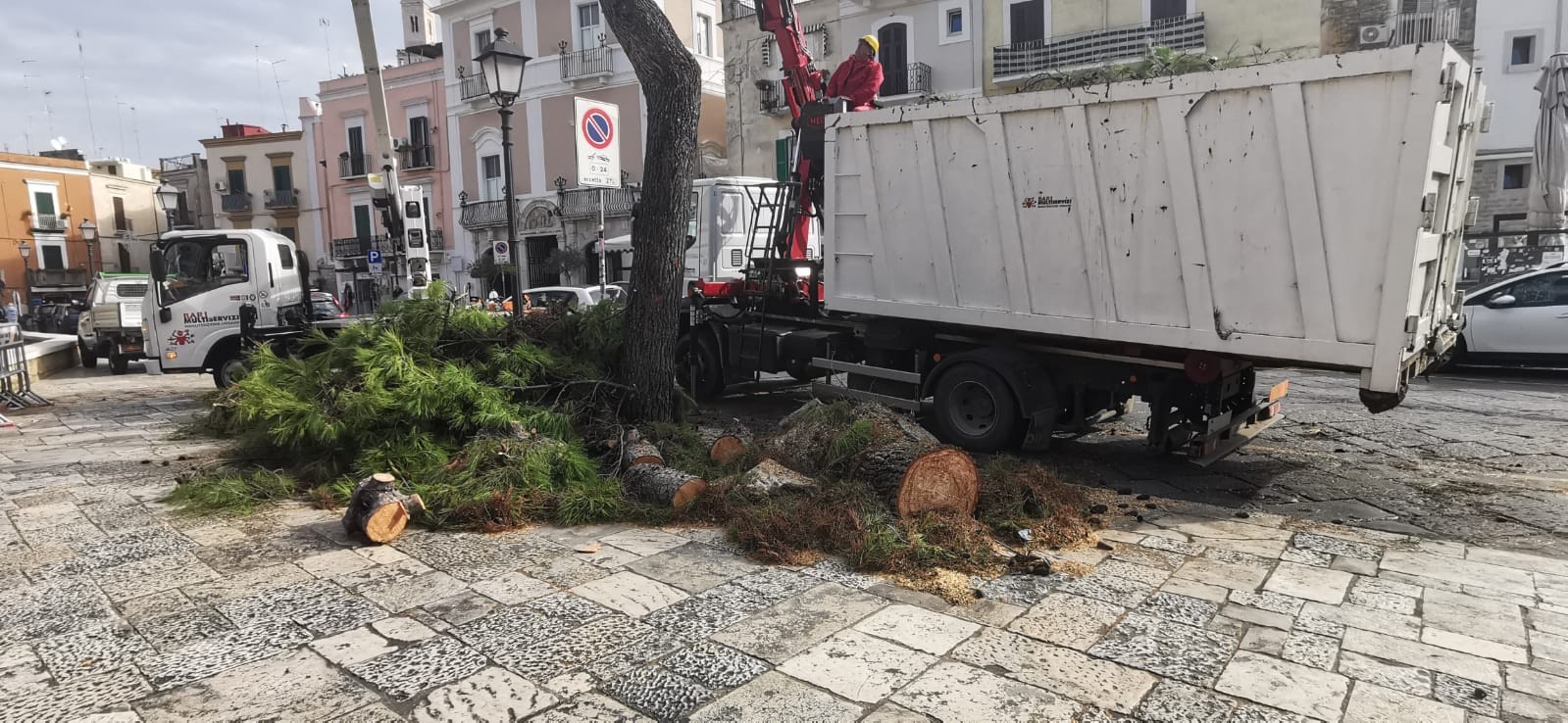 Mentre per gli alberi caduti sono già in corso le operazioni di rimozione, contestualmente è in corso il monitoraggio di eventuali altri esemplari che presentino segni di instabilità: da un primo esame risulta che, a garanzia della sicurezza pubblica, lungo il perimetro del Castello svevo un pino dovrà essere immediatamente rimosso, in quanto la zolla cui è ancorato risulta ribaltata, e un altro, pericolante, dovrà essere abbattuto nei prossimi giorni.