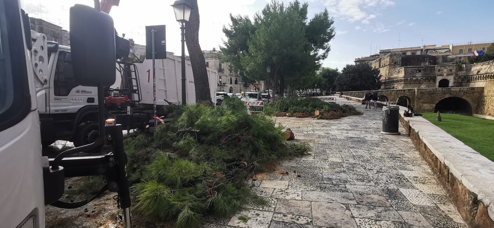 Maltempo a Bari, da Castello Svevo alla pineta San Francesco: crollati tre alberi. Monitoraggio in corso – FOTO
