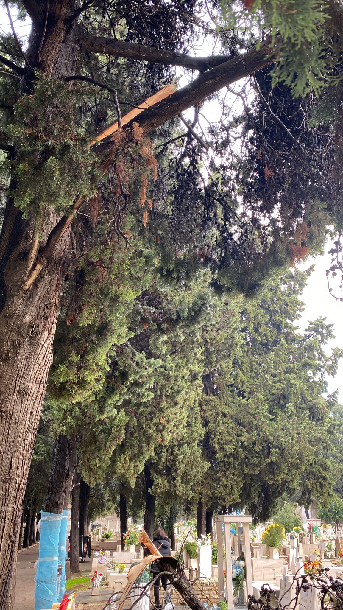 Nel cimitero monumentale, inoltre, le raffiche di vento hanno spezzato alcuni rami di un grande cipresso: una squadra della Multiservizi sta provvedendo sia a rimuovere i rami caduti sia a sistemare altri alberi che presentano rami pericolanti.
