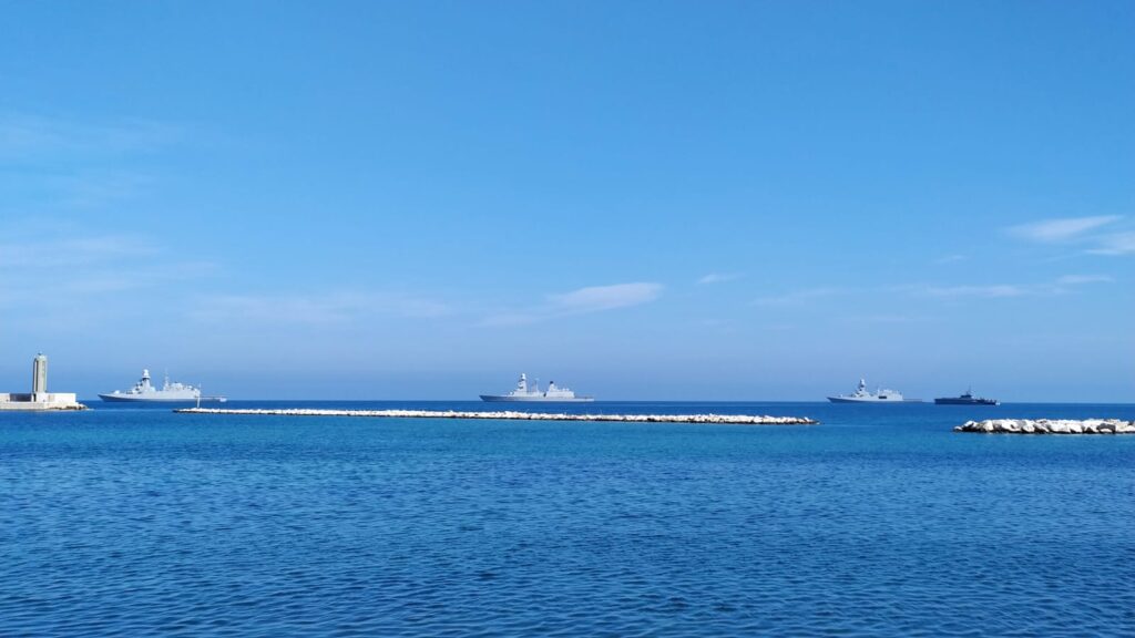 Bari si prepara alla visita del presidente della Repubblica, Sergio Mattarella, in programma il 4 novembre in occasione della cerimonia commemorativa del Giorno dell’Unità Nazionale e della Giornata delle Forze Armate. La città sarà blindata, mentre oggi sono in programma le prove generali dell’evento. Agli occhi dei più attenti non è sfuggita la presenza sul lungomare di Bari di ben tre navi militari allineate (Duilio, Bergamino e Carabiniere) che accoglieranno Mattarella sparando 21 colpi a salve, come prevede proprio la pratica del saluto militare.
