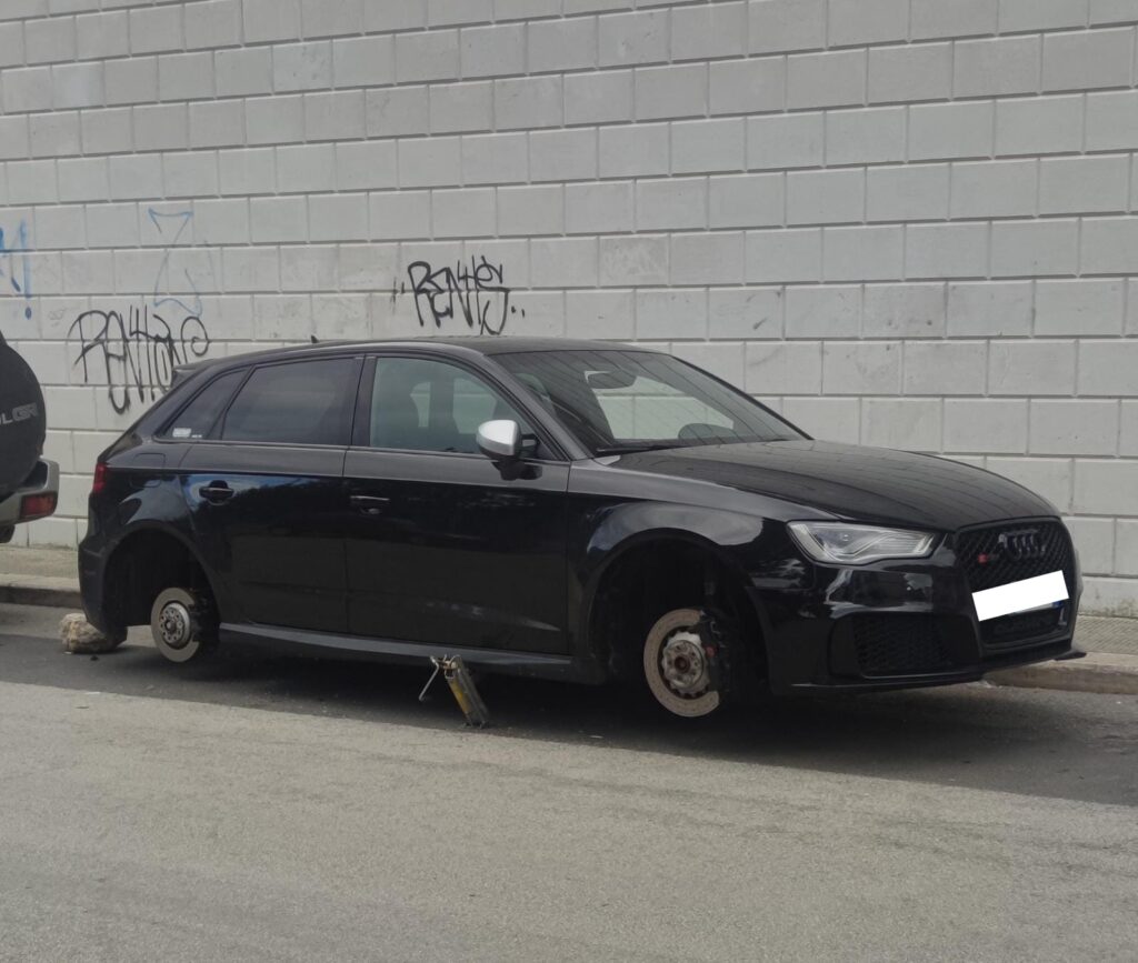 Auto sventrata a Modugno. È successo in via Fermi, nei pressi della scuola Casavola-D’Assisi. I ladri hanno agito in nottata. I malviventi, stando a quanto si nota dalle foto, hanno rotto il finestrino dell’Audi A3 e rubato lo sterzo, oltre che i quattro penumatici. Al momento non è chiaro se nella via ci siano telecamere di videosorveglianza per riuscire a risalire all’identità dei ladri.