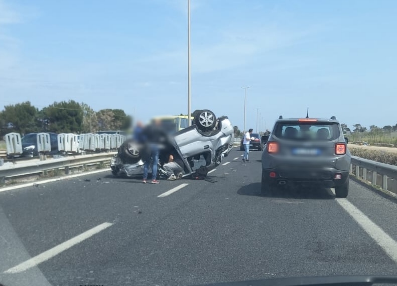 Un grave incidente si è verificato attorno alle 14 sulla ss16 direzione sud, all’altezza di Mola. Coinvolta nello schianto un’auto che ha abbattuto un palo prima di ribaltarsi sulla strada.