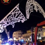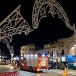 Molfetta, auto colpisce il palo e l’arco delle luminarie si spezza in due: Vigili del Fuoco evitano il peggio – FOTO