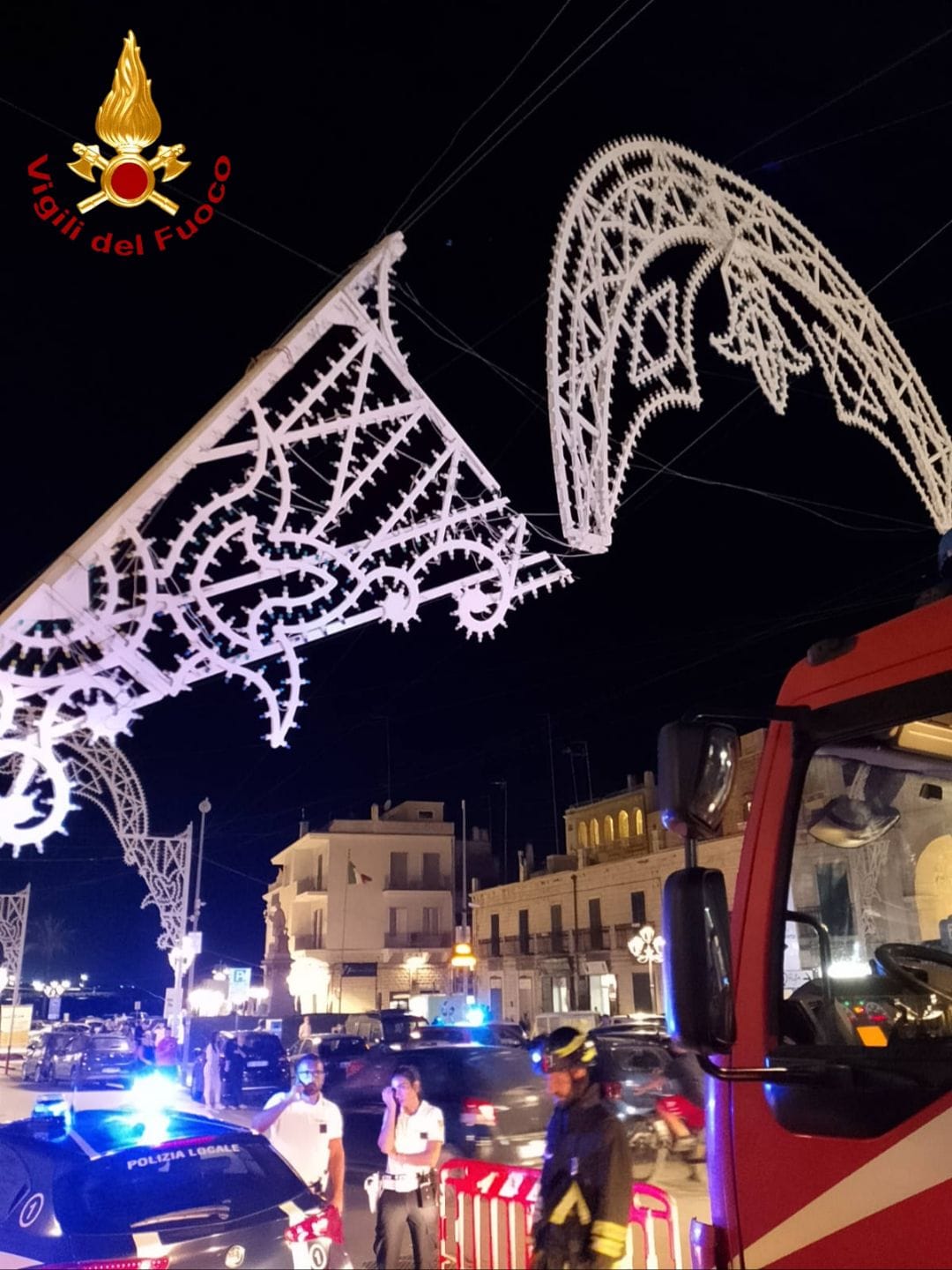 Ieri sera intorno alle ore 20 una squadra di Vigili del Fuoco di Bari è intervenuta a Molfetta per mettere in sicurezza le luminarie della festa patronale che avrà luogo nei prossimi giorni.
