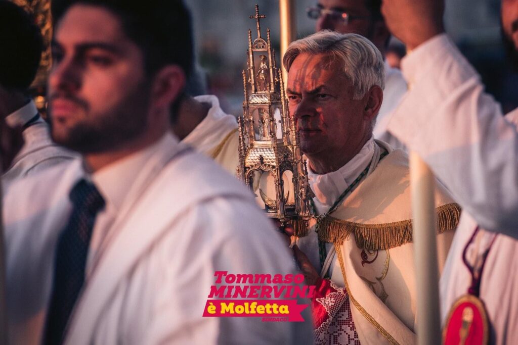 “La diocesi di Molfetta-Ruvo-Giovinazzo-Terlizzi, insieme al suo vescovo mons. Domenico Cornacchia e all’intero presbiterio della città di Molfetta, prende le distanze dall’uso strumentale di alcune foto della processione del Corpus Domini, svoltasi ieri 19 giugno, apparse su alcune pagine social, in vista del prossimo ballottaggio che si svolgerà nella città di Molfetta la prossima domenica”.