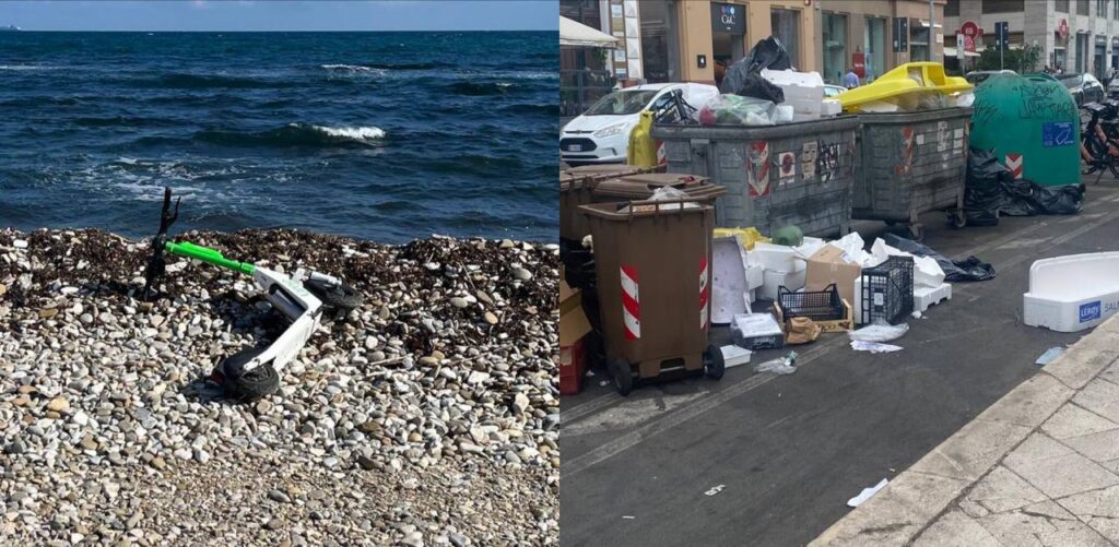 Un monopattino abbandonato in riva a Torre Quetta a pochi passi dal mare. Rifiuti abbandonati per strada da corso Vittorio Emanuele al Libertà. Arrivano cartoline di inciviltà a non finire alla nostra redazione e soprattutto ad ogni ora del giorno. Mattina, pomeriggio e sera, sembra non fare la differenza. Chissà cosa penseranno i tanti turisti che hanno scelto Bari per l’estate.