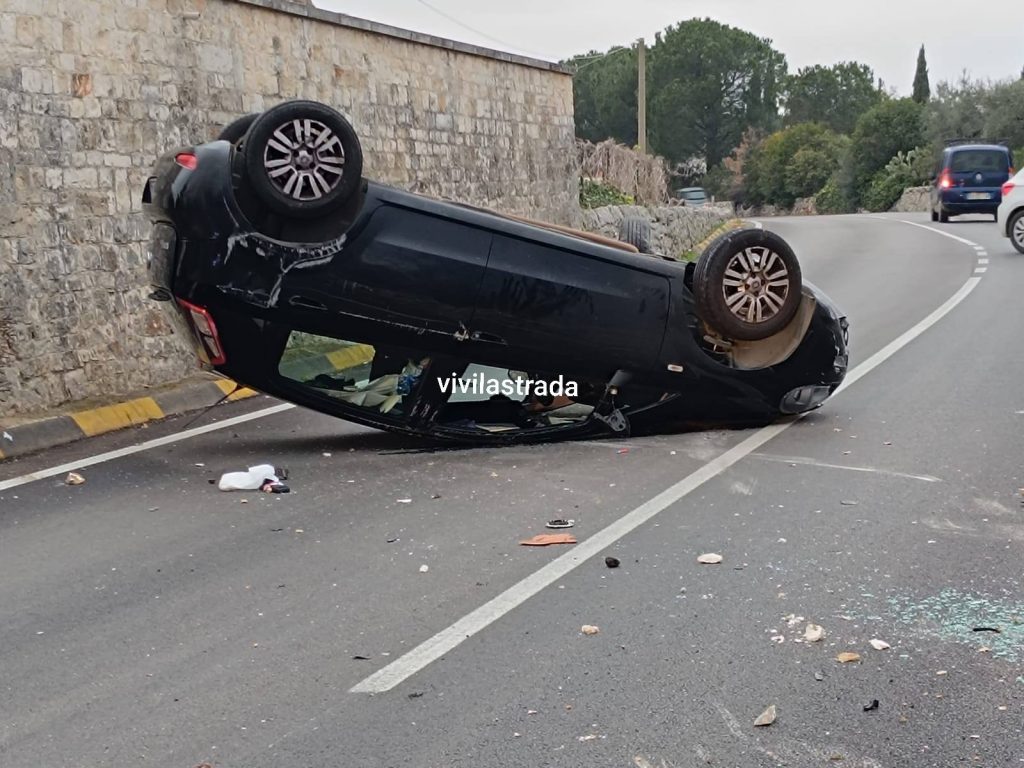 Un incidente si è verificato questo pomeriggio a Monopoli, in contrada Antonelli. Una fiat punto si è ribaltata dopo aver colpito un muretto a secco.